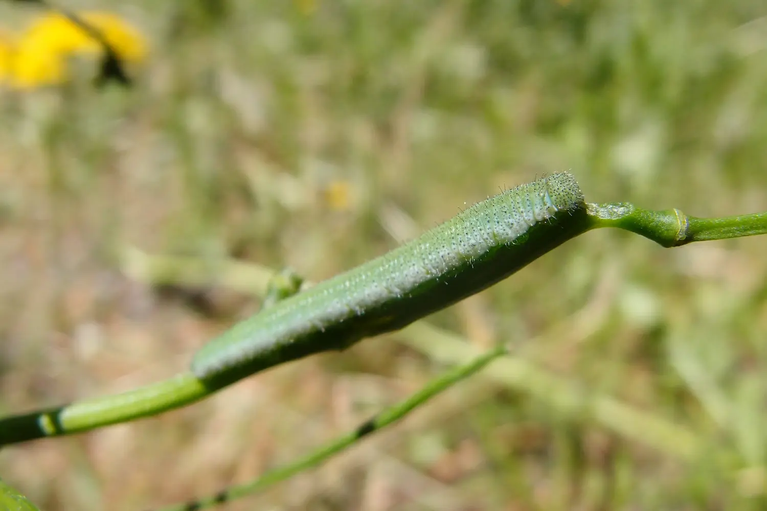 Chenille solitaire sur les siliques des plantes hôtes.