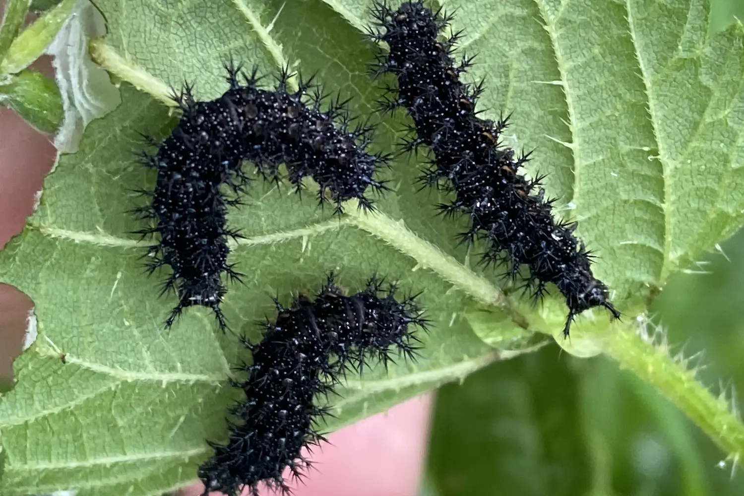 Chenille noire avec des points blancs et des scoli noirs ramifiés. Vit en groupe quand elle est jeune.