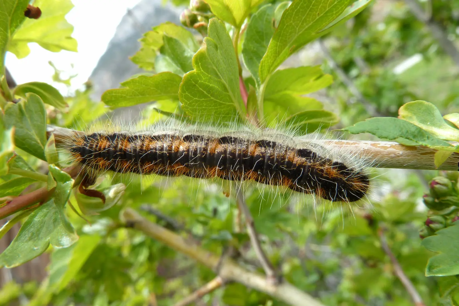 Chenille brune et noire, grise sur le dessous. Vit en colonie quand elles sont jeunes, puis ont tendance à se disperser