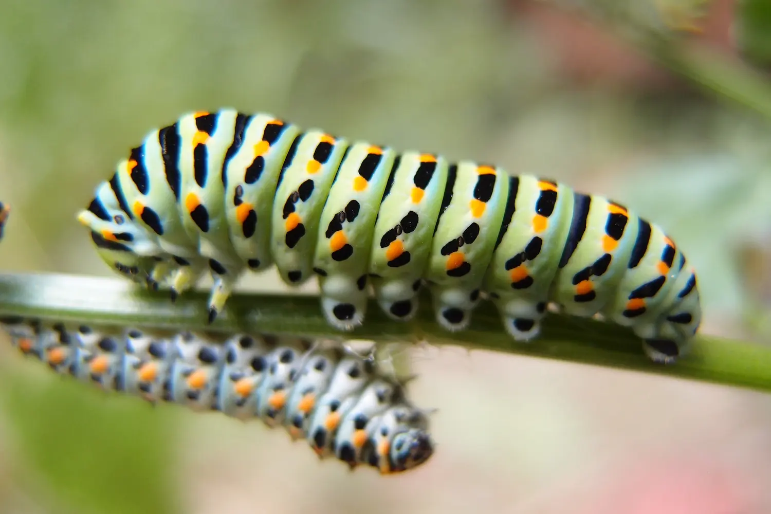 Chenille le plus souvent verte, parfois noire ou blanche. Taches orange inhabituelles sur les segments.