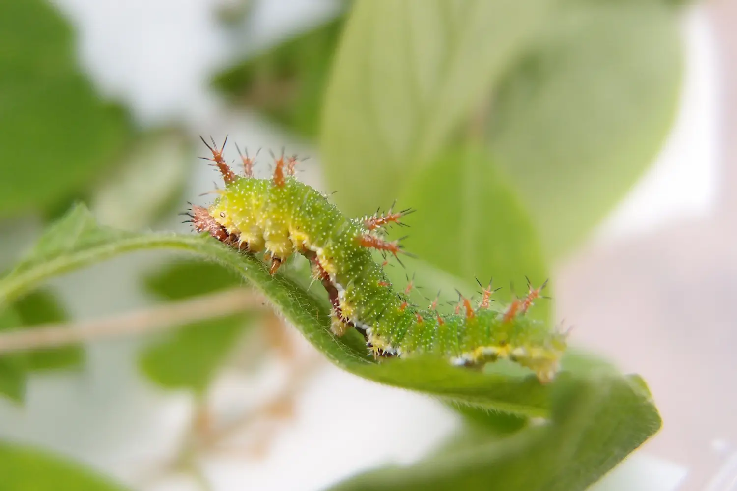 Chenille verte avec des scoli épineux brunâtres.